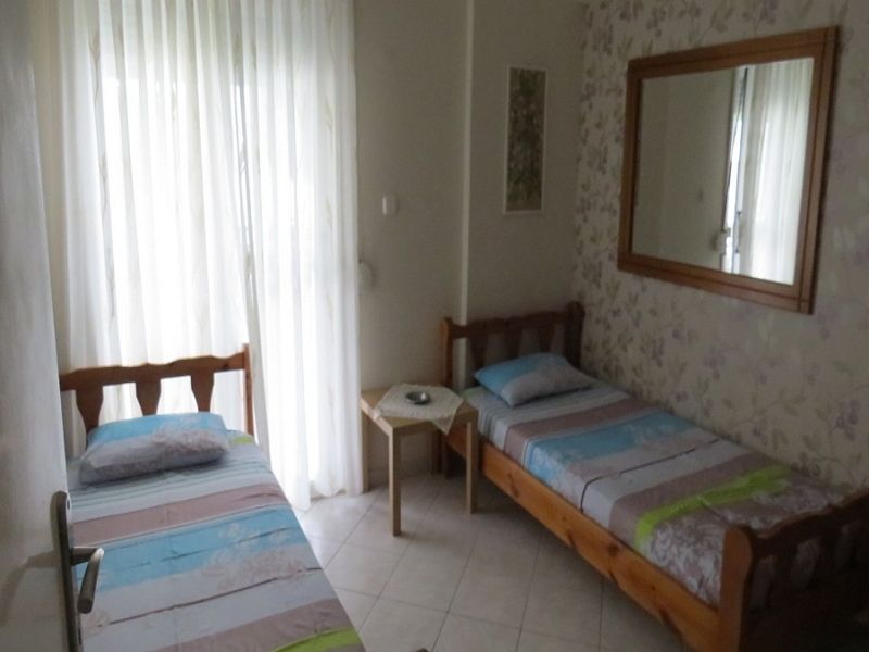 Апартман бр.8 се наоѓа на третиот кат , има еден брачен кревет во посебна соба и два единечни во дневниот простор, во истата просторија е кујната опремена со голем фрижидер и мини шпорет со релна, климата и ТВ, тераса.