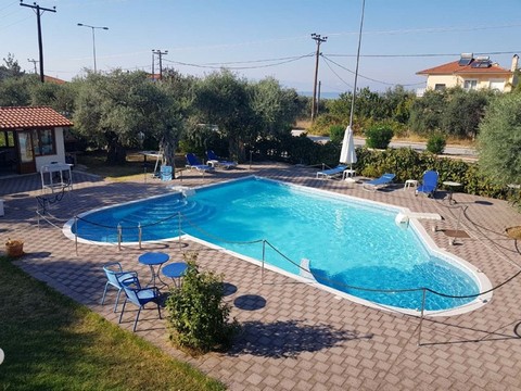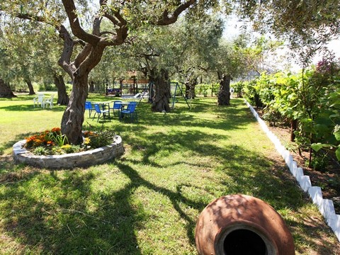 Во градината околу големиот базен со џакузи има лежалки и чадори и игралиште за помладите гости.