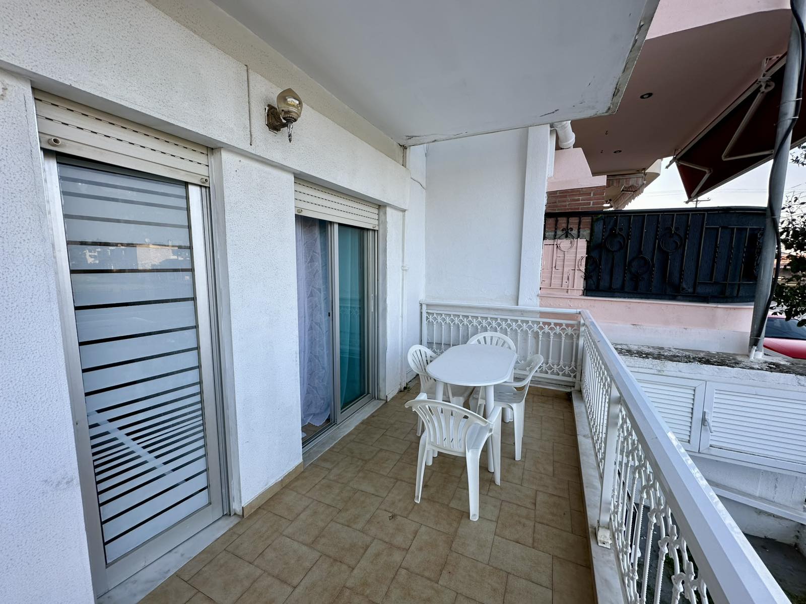 1/4 дуплекс апартман бр. 2 – прв кат. Простран дуплекс апартман кој располага со три посебни простории: 2 одвоени спални соби, од кои во едната има брачен кревет, а во другата 2 стандардни единечни кревети и од двете спални соби се излегува на сопствена тераса. Одвоена опремена кујна со сите потребни елемнти (голем фрижидер, голем шпорет со рерна, кујнски прибор, електричен бокал за вода и сл.) и сопствен реновиран тоалет со туш. Опремен е со квалитетен реновиран мебел за лето 2026, 2 клима уреди, ТВ, Wi-Fi.