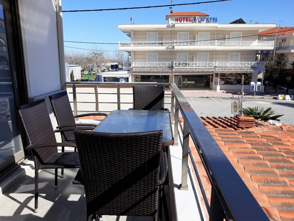 Вила “MEDITERAN” се наоѓа во близина на луна паркот во Неи Пори, во првиот ред до плажа. Располага со убаво уредени трокреветни студија и апартмани со една спална за 4 лица, со комплетно нови купатила и кујни. Во трокреветните студија има еден брачен кревет и еден петосед (погоден за 2 деца или едно возрасно лице). Во апартманите со една спална има еден брачен кревет во спалната и уште еден брачен кревет во кујната. Секое студио/апартман е комплетно опремено со: кујна со комплетен прибор за онолку лица према број на легла, фрижидер..., тоалет, балкон со масичка со столчиња (со поглед кон улицата од студијата и поглед на море), клима, ТВ, гардеробер. Wi-Fi интернет - Бесплатен.