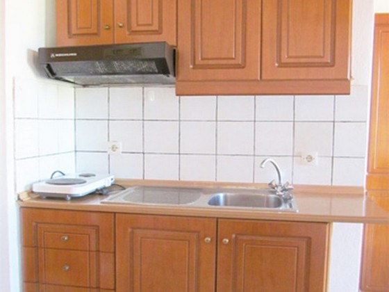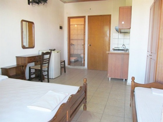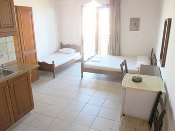 Студиото располага со еден дупол кревет,еден поединечен кревет и еден кревет на спуштање.Во сколопот на собата е кујната која е комплетно опремена со кујнски инвентар.Има решо со две рингли,аспиратор и фрижидер.Излегува на комотна тераса со маса и столици и има страничен поглед на море.Студиото има клима уред,тв и стандардно купатило со вц.