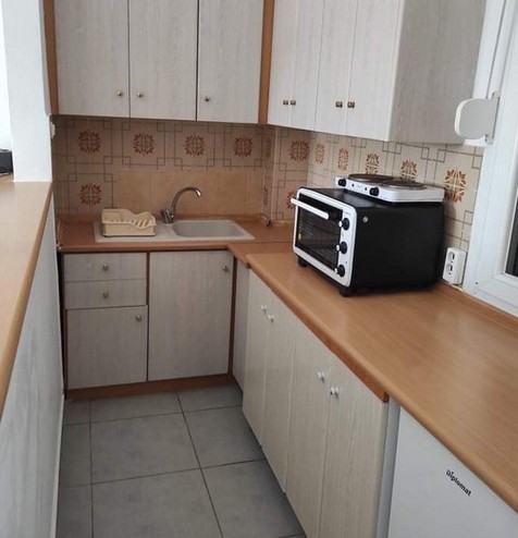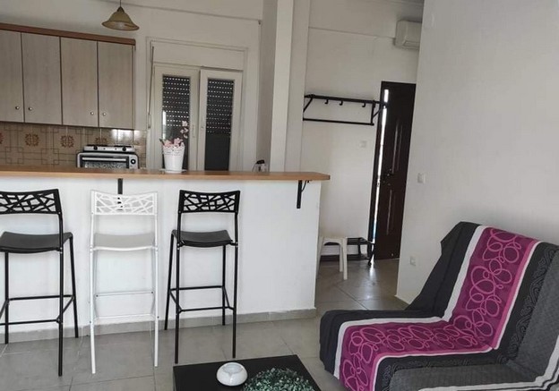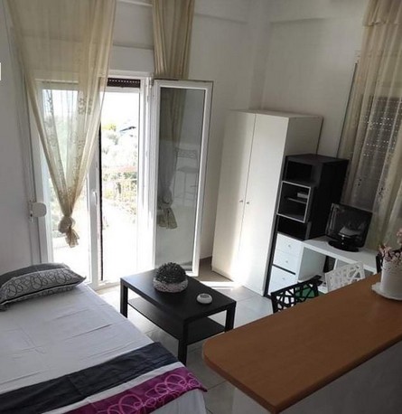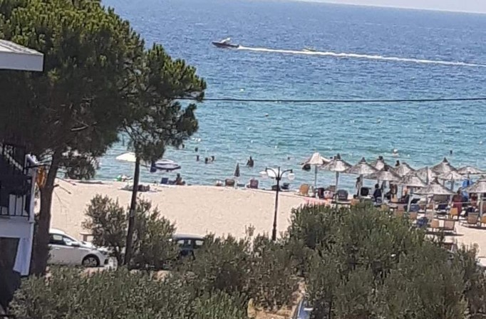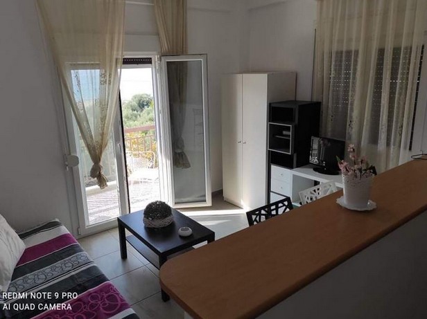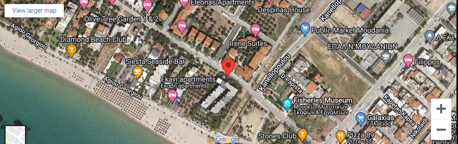 Апартмани “Mediteran” се наоѓаат на 50m од плажа/море во крајниот дел на Неа Модања, кадешто е најубавата плажа на Модања (широка плажа - ситен песок - бистра вода), и околу 400м од центарот. Вилата има голем двор со многу зеленило. Апартманите се на II кат и имат поглед на море. Распоредот е следен: дневна соба со поглед кон море / кујна со шанк, кауч на спуштање за две лица, спална соба со брачен кревет за две лица, купатило, голема аголна тераса со поглед кон море на која се излегува од двете соби. Апартманите се опремени со: голема кујна (со комплетен прибор за онолку лица према број на легла, фрижидер), тоалет, туш, балкон (масичка со столчиња), телевизор, гардеробер, клима (вклучена во цената), како и бесплатен интернет. Од дворот на вилата се излегува на плажа (најубавата плажа во Неа Модања со ситен песок, на која што има лежалки и простор за сопствен чадор и лежалки. Апартманите се наоѓаат на II кат.