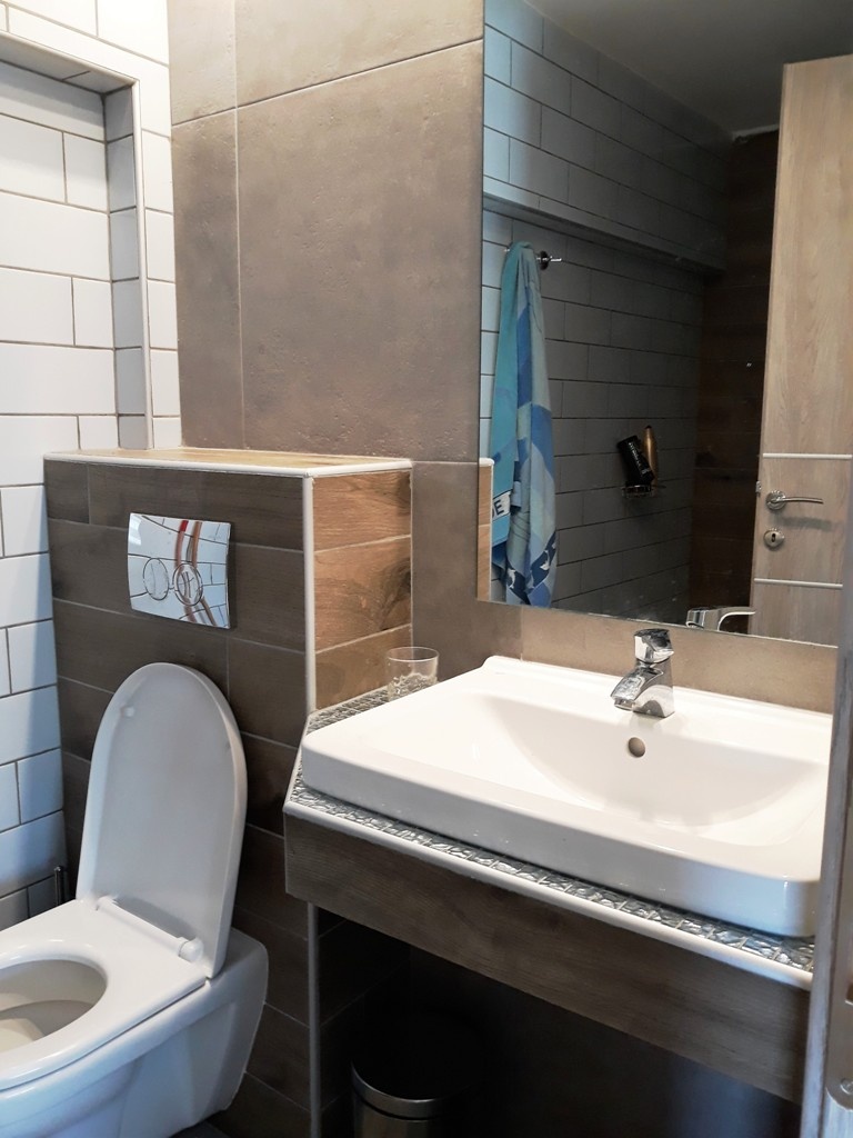 Вила “MEDITERAN” се наоѓа во близина на луна паркот во Неи Пори, во првиот ред до плажа. Располага со убаво уредени трокреветни студија и апартмани со една спална за 4 лица, со комплетно нови купатила и кујни. Во трокреветните студија има еден брачен кревет и еден петосед (погоден за 2 деца или едно возрасно лице). Во апартманите со една спална има еден брачен кревет во спалната и уште еден брачен кревет во кујната. Секое студио/апартман е комплетно опремено со: кујна со комплетен прибор за онолку лица према број на легла, фрижидер..., тоалет, балкон со масичка со столчиња (со поглед кон улицата од студијата и поглед на море), клима, ТВ, гардеробер. Wi-Fi интернет - Бесплатен.