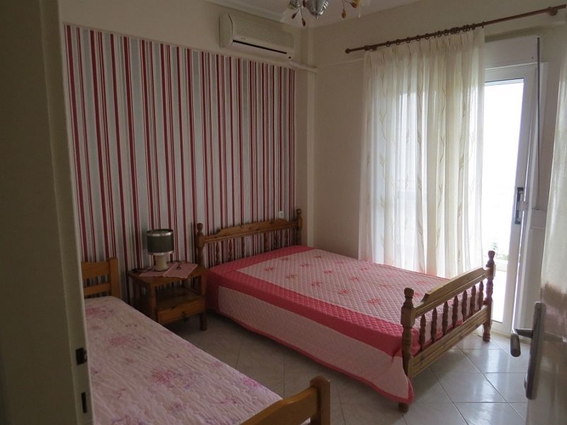 Апартман бр.8 се наоѓа на третиот кат , има еден брачен кревет во посебна соба и два единечни во дневниот простор, во истата просторија е кујната опремена со голем фрижидер и мини шпорет со релна, климата и ТВ, тераса.